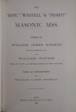 "Hope," "Waistell," & "Probity" Masonic MSS.