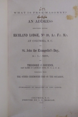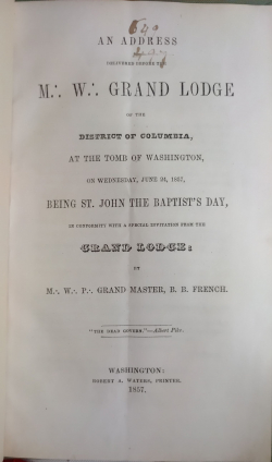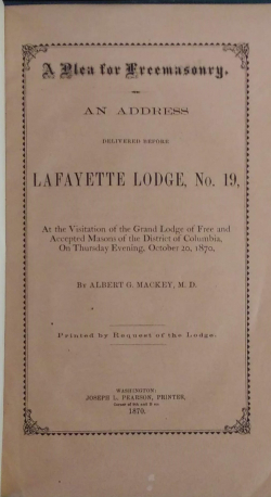 Inscribed by author: "Edition of the Masonic ????? & Ke???? - with respects of Philip C. Tucker"