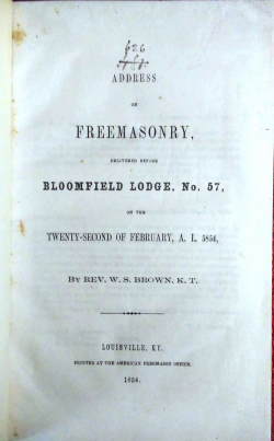 Address on Freemasonry delivered Before Bloomfield Lodge No.57, Feb 22, 1854