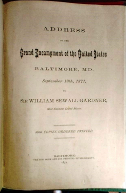Address to the Grand Encampment of the United States, Baltimore, MD, Sept 19th, 1871 by Most Eminent Grand Commander Sir William Sewall Gardener