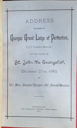 Address to Gourgas Grand Lodge of Perfection at the Feast of St. John the Evangelist, 1883