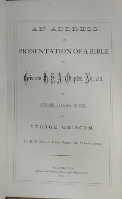 Address on Presentation of a Bible to Griscom H. R. A. Chapter No. 219, at Ashland, 1870