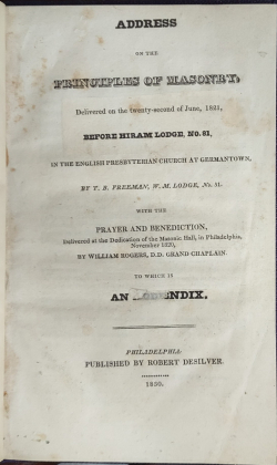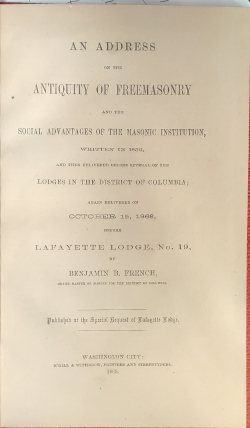 Address on the Antiquity of Freemasonry and the Social Advantages of the Masonic Institution, 1868