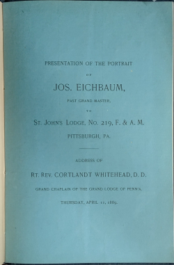 Address on Presentation of a Portrait of Jos. Eichbaum, Past Grand Master (1889)