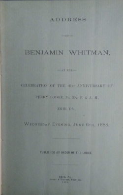 Address of Benjamin Whitman at the Celebration of the 21st Anniversary of Perry Lodge No.392