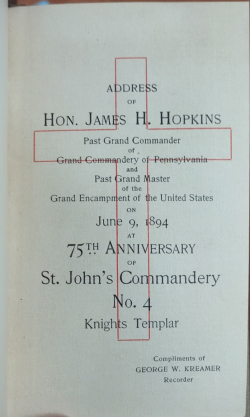 Address of Hon. James H. Hopkins at 75th Anniversary of St. John's Commandery No. 4, June 9, 1894