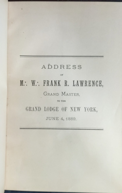 Address of Frank R. Lawrence, Grand Master of the Grand Lodge of New York, 1889