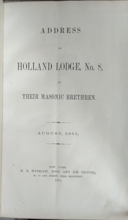 Address of Holland Lodge No. 8 to their Masonic Brethren (1855)