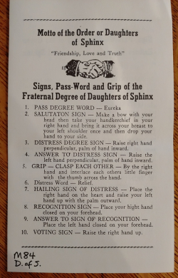 Signs, Pass-words, And Grip of the Fraternal Degree of Daughters of Sphinx
