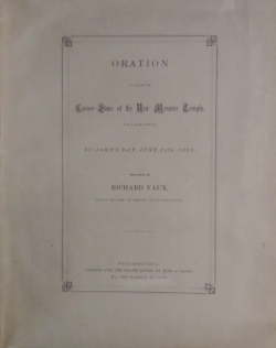 Installation Address of Richard Vaux, R. W. G. M., Annual Communication, 1867