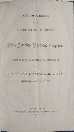 Correspondence Between Chairman of the Permanent Committee of the North American Masonic Congress and the Chairman of Correspondence of the Grand Lodge of Pennslyvania
