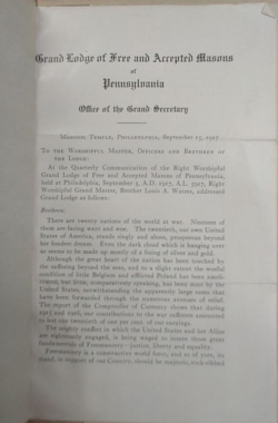 Address of Louis A. Watres, R. W. G. M., Quarterly Communication, 1917