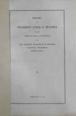 Report of the President Louis A. Watres to the George Washington Masonic National Memorial Association, 1922, 1926