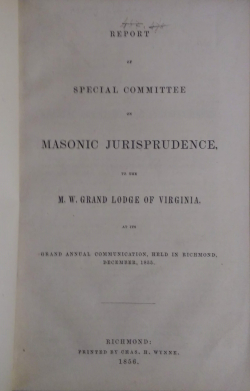 Report of Special Committee on Masonic Jurisprudence to the M. W. Grand Lodge of Virginia