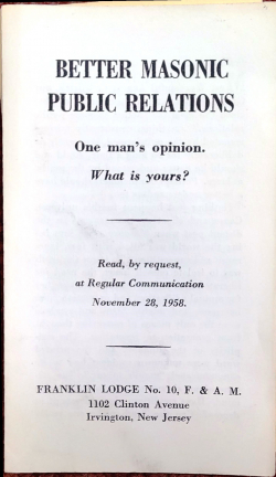 Better Masonic Public Relations: One Man's Opinion - What's Yours? | Books | 1 |