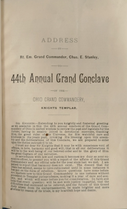 Address - Grand Commandery KY of OH - 44th Annual Grand Conclave - REGC Chas. Stanley
