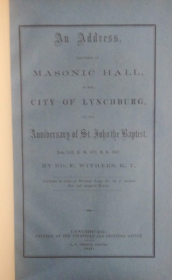 Address Delivered at Masonic Hall in the City of Lynchburg on the Anniversary of St. John the Baptist, June 24, 1857