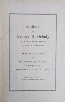 Address at a Stated Meeting Meeting of Moriah Lodge No.300, June 7th, 1915