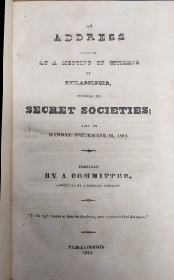 Address Adopted at a Meeting of Citizens of Philadelphia Opposed to Secret Societies. held on Monday 14 Sept 1829