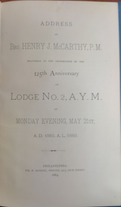 Address Delivered at Celebration of the 125th Anniversary of Lodge No.2 A. Y. M.