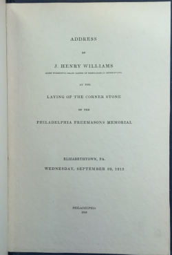 Address by J. Henry Williams at the Laying of the Cornerstone of the Philadelphia Freemasons Memorial
